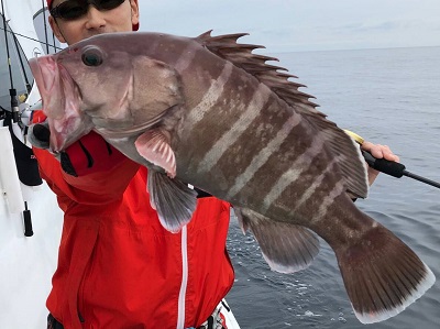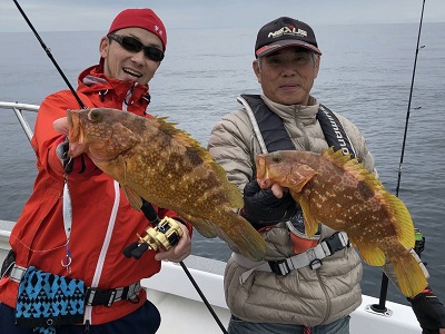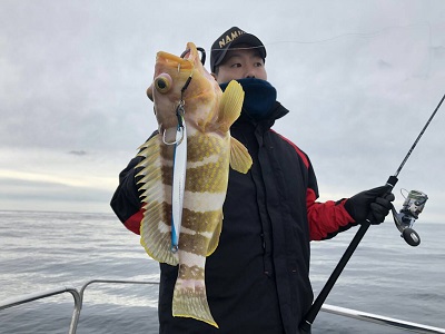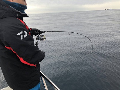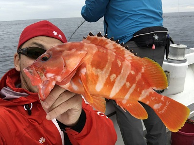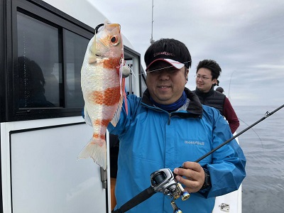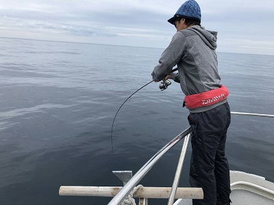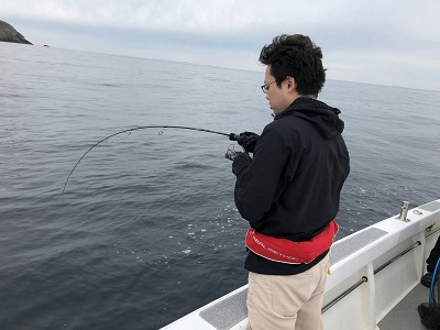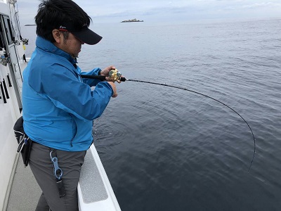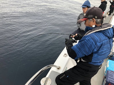 午後から上物師が磯から降りてから水深40m弱のポイントへ移動。