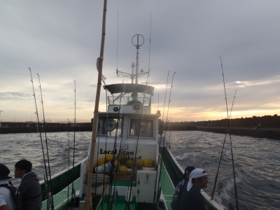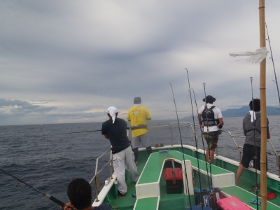 S氏がミヨシに立てている。絶好のタイミングだ。