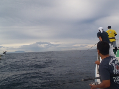 どうやら小さなソウダ鰹が小魚を追い回しているようだ。