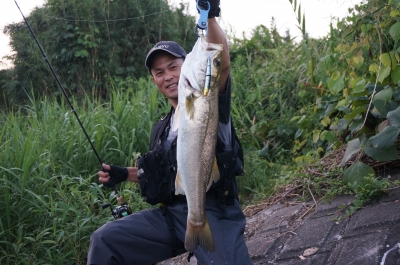 真横から勢いよくシーバスが飛び出した!