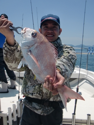 船中でもポツリポツリと鯛をキャッチする方が増えてきました。
