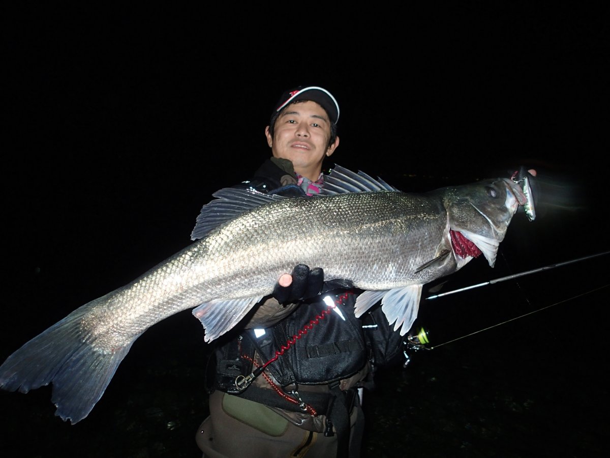 12月12日にキャッチした83cmの丸々太ったシーバスは50m以上沖でヒット。
