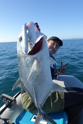 予想通り、メッキやダツが勢いよくルアーにアタックしてくる。